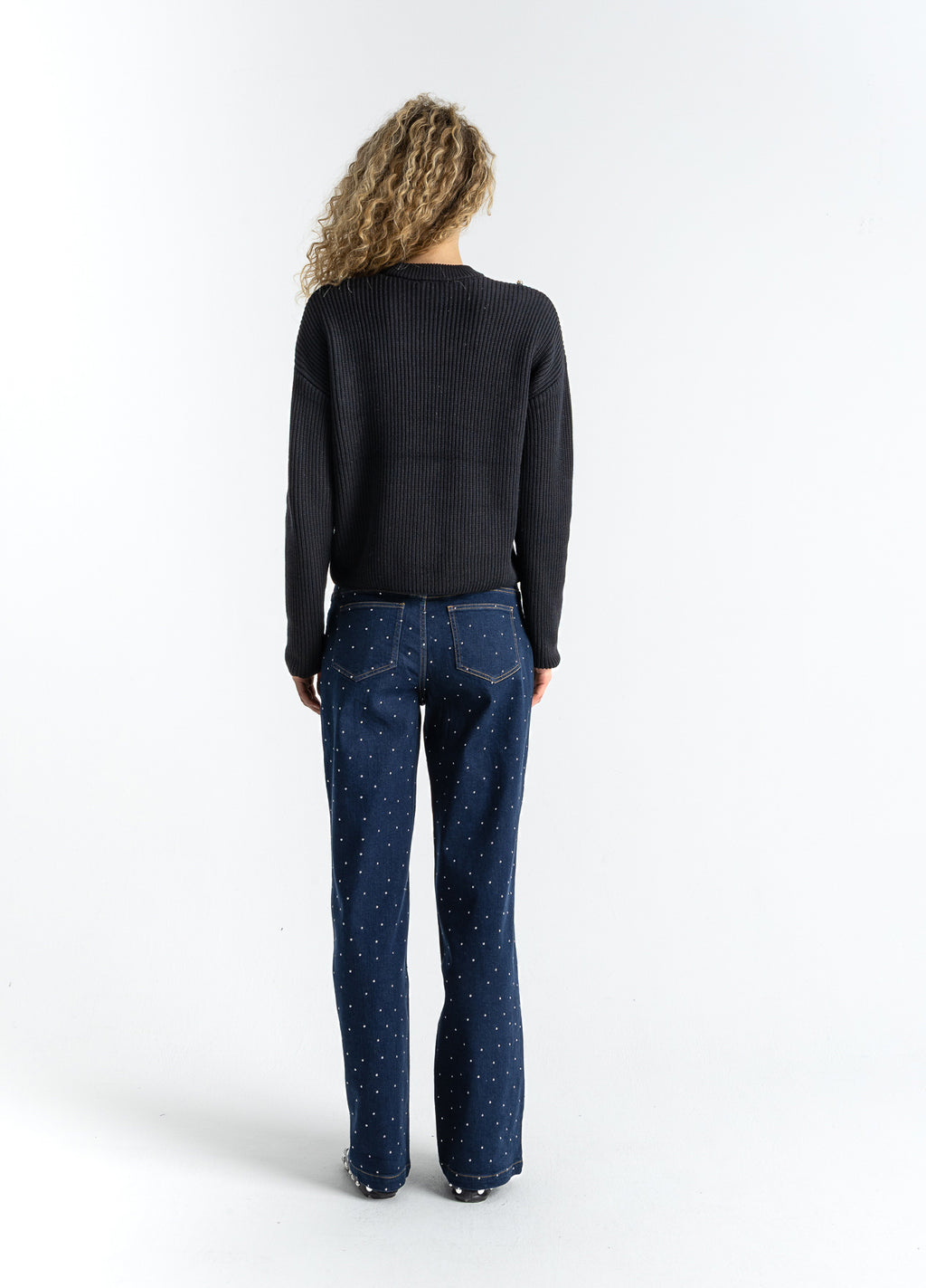 Modellen är 182 cm lång och bär storlek S. Hennes byst är 82 cm, midja 61 cm och höfter 93 cm.