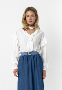 BLUS MED LÅNGA ÄRMAR OCH VOLANGER