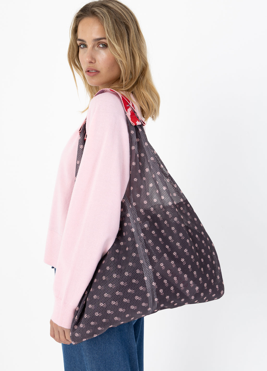 Denna meshväska är perfekt som både en shoppingväska eller arbetsväska. Du kan bära den över axeln eller i handen.